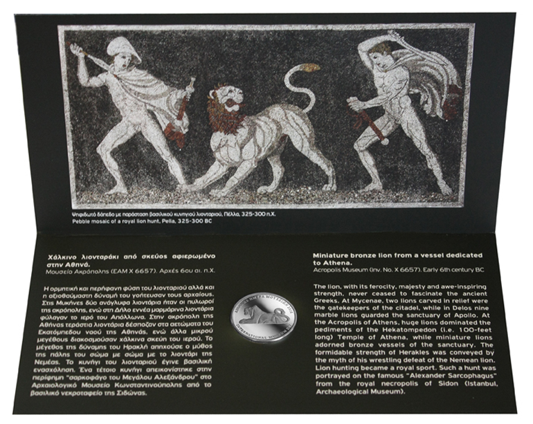 Για να τιμήσει τη φετινή Διεθνή Ημέρα Μουσείων, το Μουσείο Ακρόπολης θα κυκλοφορήσει αναμνηστικό μετάλλιο που έκοψε το Εθνικό Νομισματοκοπείο με θέμα το λιοντάρι. Στην Ακρόπολη της Αθήνας, τεράστια λιοντάρια δέσποζαν στα αετώματα του Εκατόμπεδου ναού της Αθηνάς, ενώ άλλα μικρού μεγέθους διακοσμούσαν χάλκινα σκεύη του ιερού.