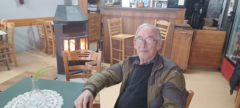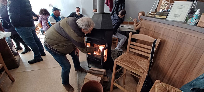 Ο Γιώργος Βελιάμης, επί σειρά ετών ιδιοκτήτης του καφενείου, αναλαμβάνει να γεμίζει την ξυλόσομπα, μιας και η μέρα δείχνει να είναι παγωμένη. Αν και συνταξιούχος εδώ και πολλά χρόνια, δεν υπάρχει ημέρα που να μην περάσει από το «Διεθνές» που άφησε το δικό του ίχνος στην διεθνοποίηση της Φλώρινας και στο οποίο ο ίδιος πέρασε 35 χρόνια από την ζωή του.