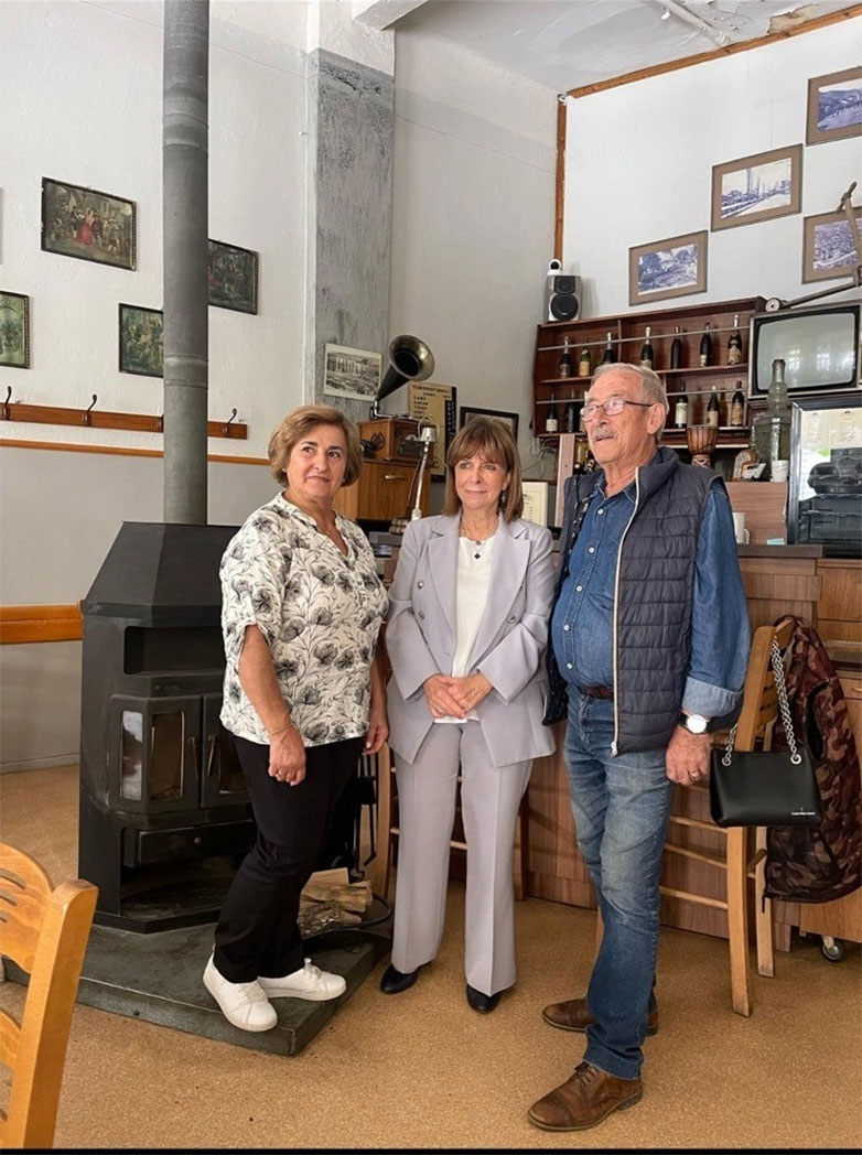 «Με είχαν ενημερώσει από την προηγουμένη ημέρα για την επίσκεψη. Η Πρόεδρος ήρθε πρωί – πρωί με την συνοδεία της για να πάρει τον πρωινό καφέ. Μετά τις πρώτες κουβέντες γνωριμίας, την ρώτησα τι πιστεύει ότι πρέπει να γίνει με τα δεκάδες νεοκλασικά κτίρια που βρίσκονται στην γειτονιά μας και που κινδυνεύουν να πέσουν. Μου είπε ότι δεν υπάρχουν τόσα πολλά χρήματα στο κράτος για να μπορέσουν να σωθούν όλα αυτά τα κτίρια που βέβαια δεν βρίσκονται μόνο στην Φλώρινα» σημειώνει. Ο Γιώργος Βελιάμης εκμυστηρεύεται ότι άρεσε τόσο πολύ ο χώρος στην Πρόεδρο που, εκτός προγράμματος, επέστρεψε εκ νέου το μεσημέρι για να γευθεί με του συνεργάτες της γεύσεις και εδέσματα της Φλώρινας. «Φεύγοντας αφού μας ευχαρίστησε λέγοντας ότι είχε ακούσει εξαιρετικές κουβέντες για το χώρο, ζήτησε ‘να κρατήσουμε την παράδοση και την ταυτότητα του μαγαζιού’ και μας αποκάλυψε ότι γνωρίζει την Φλώρινα αφού παλιά έχει υπηρετήσει ως δικαστικός στο Πρωτοδικείο της πόλης» συμπληρώνει.