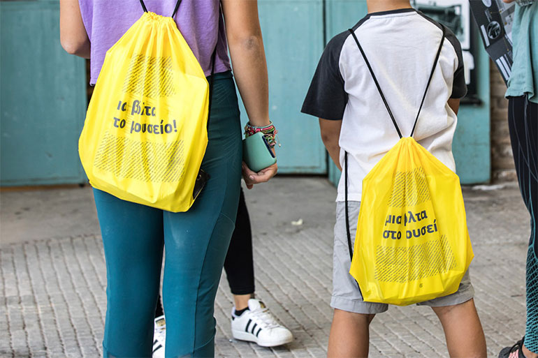 Οι επισκέπτες μπορούν να δανειστούν το διαδραστικό κίτρινο σακίδιο που προσφέρει όλες τις απαραίτητες οδηγίες για την περιήγηση στο μουσείο, μέσα από χάρτες, αυτοκόλλητα, παιχνίδια μνήμης, επιτραπέζια, κάρτες ζωγραφικής και παζλ που προσκαλούν τα παιδιά να έρθουν σε επαφή με τη βιομηχανική μας κληρονομιά μέσω της διάδρασης και του παιχνιδιού. Ιδιαίτερα, τις Κυριακές 3 και 31 Οκτωβρίου, από τις 11.30 έως τις 13.30, οι άνθρωποι του μουσείου θα βρίσκονται στον χώρο για να διευκολύνουν τους επισκέπτες να ανακαλύψουν όλα τα μυστικά του σακιδίου.