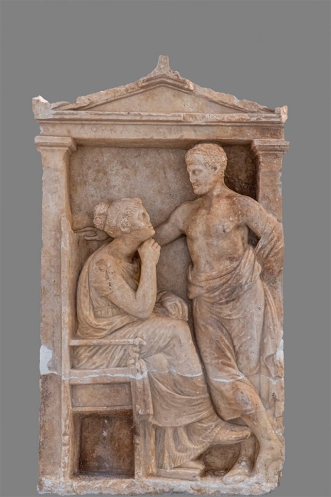 Η επιτύμβια στήλη του 4ου αι. π. Χ., που αναπαριστά ανάγλυφα ένα αντρόγυνο σε μία σπάνια για την εποχή απόδοση συναισθημάτων, είναι το νέο έκθεμα του Αρχαιολογικού Μουσείου Πειραιά. Η επιτύμβια στήλη της Δορκάδος, όπως είναι το όνομα της νεκρής γυναίκας που κοιτά με βλέμμα γεμάτο αγάπη τον σύντροφό της, ο οποίος και της το ανταποδίδει, θα παρουσιαστεί στο Αρχαιολογικό Μουσείο Πειραιά, την Τετάρτη 16 Μαρτίου, στις 6:00 μμ. Η εναρκτήρια εκδήλωση, που θα εγκαινιάσει η υπουργός Πολιτισμού και Αθλητισμού Λίνα Μενδώνη, πλαισιώνει τις δράσεις τις οποίες διοργανώνει το Αρχαιολογικό Μουσείο Πειραιά για τον εορτασμό της Ημέρας της Γυναίκας, «σε μία περίοδο ιδιαίτερα δύσκολη λόγω της πανδημίας, αλλά και με επάλληλα φαινόμενα βίας κατά των γυναικών», όπως αναφέρει η σχετική ανακοίνωση της Εφορείας Αρχαιοτήτων Πειραιώς και Νήσων (ΕΦΑΠΝ).