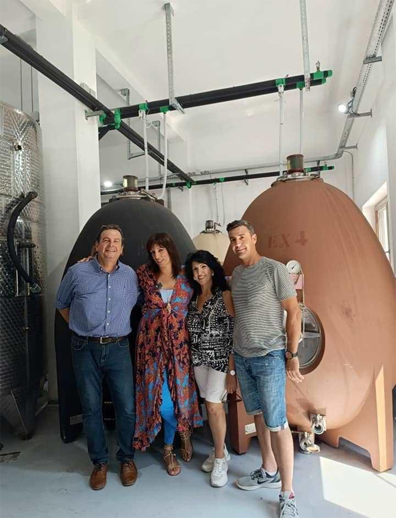 Στη συνέχεια επισκέφθηκαν το καινοτόμο οινοποιείο ελάχιστης οινολογικής παρέμβασης, (ένα μικρό οινοποιείο μέσα στη μεγάλη μονάδα Οινοποίησης του ΕΟΣ Σάμου) όπου και αναλύθηκε όλη η διαδικασία οινοποίησης, που ξεκίνησε από τα γαλλικά αυγά και τους αμφορείς και κατέληξε στα δρύινα βαρέλια όπου ωριμάζουν τα «διαμάντια» του Αιγαίου.