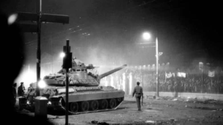 To αφιέρωμα ξεκινά από το 1973, με μια φωτογραφία που έρχεται από την χώρα μας. Το Νοέμβρη της χρονιάς εκείνης πραγματοποιείται η ιστορική εξέγερση του Πολυτεχνείου. «Στις 3 τα ξημερώματα της 17ης Νοεμβρίου 1973, ένα τανκ έσπασε τις πύλες του Πολυτεχνείου Αθηνών, καθώς οι μονάδες της αστυνομίας και του στρατού συνέτριψαν βάναυσα μια φοιτητική εξέγερση που θα προανήγγειλε το τέλος της στρατιωτικής χούντας στην Ελλάδα. Το πόσοι ακριβώς έχασαν τη ζωή τους αμφισβητείται», αναφέρει το βρετανικό μέσο στο κείμενο που συνοδεύει την ιστορική φωτογραφία.