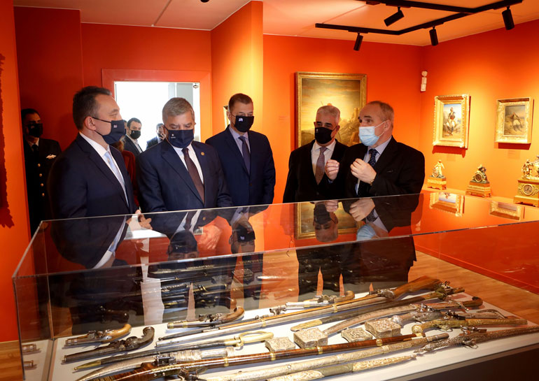 Ο Πρόεδρος της Εταιρίας για τον Ελληνισμό και τον Φιλελληνισμό και ιδρυτής του μουσείου, Κωνσταντίνος Βελέντζας, ξενάγησε τους προσκεκλημένους στις αίθουσες του πρώτου και μοναδικού θεματικού μουσείου στην Ελλάδα, αφιερωμένου στους Φιλέλληνες. Στη συλλογή του περιλαμβάνονται περισσότερα από 2.500 αντικείμενα φιλελληνικής τέχνης, πίνακες, βιβλία, έγραφα μεγάλης ιστορικής αξίας, κλπ. που προβάλλουν την ιστορία του Φιλελληνισμού από την Αναγέννηση έως σήμερα. Μεταξύ άλλων, το Μουσείο διαθέτει τη μεγαλύτερη διεθνώς συλλογή έργων τέχνης σχετικών με τον λόρδο Βύρωνα και προσωπικών του αντικειμένων, ενώ στον τελευταίο όροφο φιλοξενείται θεματική συλλογή με πορτρέτα, έγγραφα και προσωπικά αντικείμενα Αμερικανών φιλελλήνων.