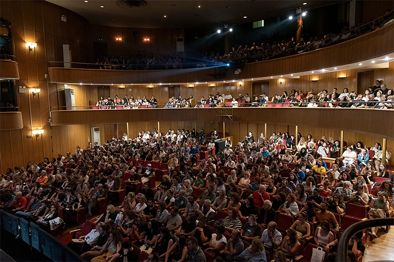 Ο Δήμαρχος Αθηναίων, Κώστας Μπακογιάννης υποδέχτηκε τον διάσημο συγγραφέα, συνομίλησε μαζί του κι έπειτα ο καλλιτεχνικός διευθυντής του Θεάτρου Ολύμπια, Olivier Descotes τον συνόδεψε στο κοινό του που αδημονούσε για την παρουσία του.