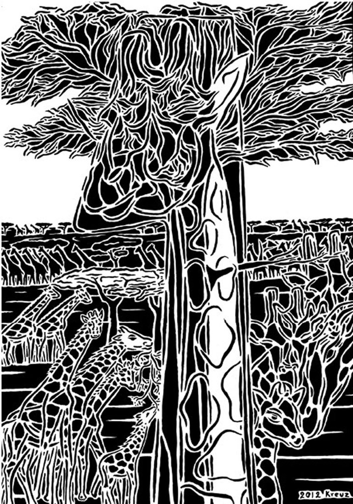Η έννοια του δίπολου, των δύο ακραίων και απόλυτα αντιθετικών δυνάμεων, λαμβάνει, στη δουλειά του Kreuz, μια ιδιάζουσα συνθετική δυναμική, η οποία αποκλείει την όποια εξασθένιση των δύο αντιμαχόμενων δυνάμεων. Το άσπρο και το μαύρο χρώμα, η φόρμα και το περιεχόμενο, το αίσθημα και η έννοια, παραμένει το καθένα τους απόλυτα και αμείωτα αυτοτελές, μα και συνάμα αδιαχώριστο από το αντίθετό του. Ακόμα και το σύμβολο, που φαίνεται να ακυρώνεται από την ενέργεια της εικόνας, βρίσκει, στη σειρά «2_ _ _», την κυριολεκτική του επιβεβαίωση: γίνεται σημείο αναγνώρισης, αντικείμενο που έχει χωριστεί σε δύο μέρη. Όταν αυτά τα μέρη –εν προκειμένω, το ψάρι και το κατσίκι– συναντηθούν, αρκεί να “συμβληθούν” ώστε να ξαναβρούν την αρχική ενιαία τους μορφή.»