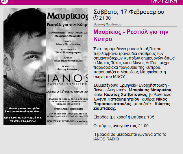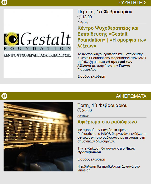 Δείτε το εβδομαδιαίο πρόγραμμα εκδηλώσεων του Ιανού για την προσεχή εβδομάδα Δευτέρα 12/2 έως Σάββατο 17/2 2018.