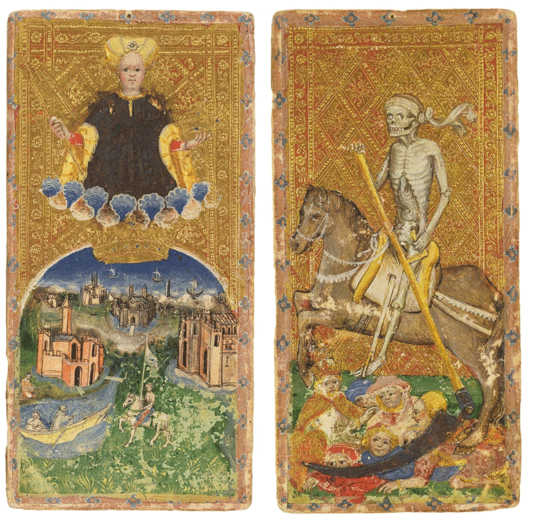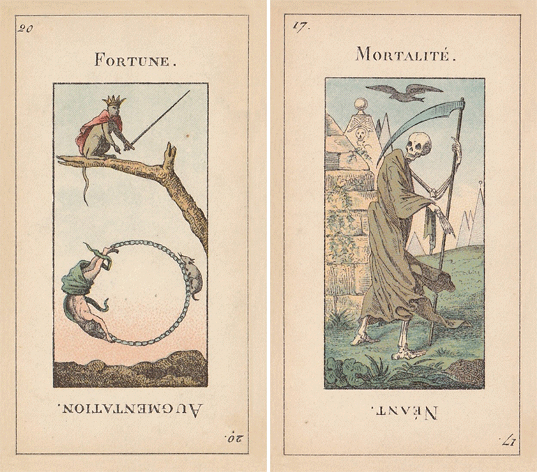 Από το μαυρόασπρο σκιτσάρισμα της κάρτας «Οι Εραστές» από την Καναδή Μάντισον Ρος μέχρι την παστέλ κάρτα του Γάλλου αποκρυφιστή Ζαν-Μπατίστ Αλιέτ (1738-1791), διερευνώνται οι συνεργασίες μεταξύ μυστικιστών και καλλιτεχνών στο διάβα των αιώνων.