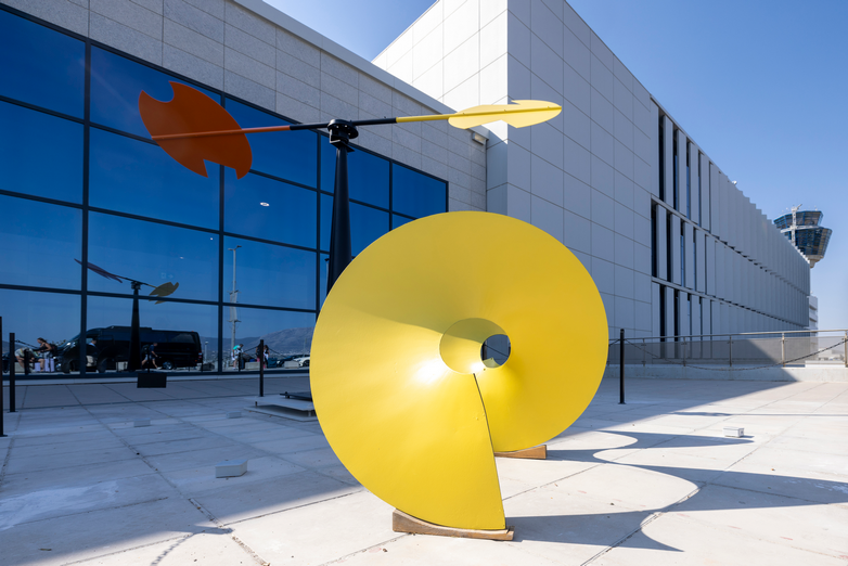 Με αφορμή τη συμπλήρωση ενός αιώνα από τη γέννηση του καλλιτέχνη, δύο ιστορικά και εμβληματικά έργα του, ένα «Αιολικό» και μία «Σπείρα», κοσμούν τον εξωτερικό χώρο των Αναχωρήσεων (Είσοδος 1) έως τις 24.01.2026.