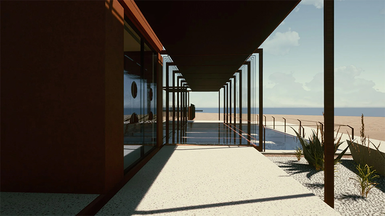 Φωτορεαλιστική απεικόνιση κτηρίου εισόδου αρχαιολογικού χώρου Ελευσίνας