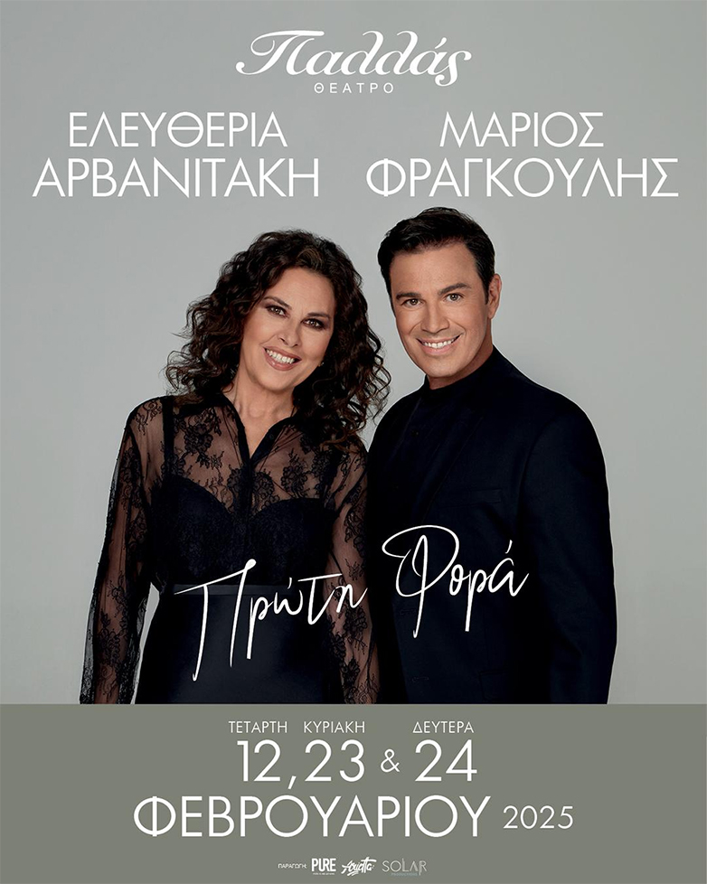 Η Ελευθερία Αρβανιτάκη κι ο Μάριος Φραγκούλης θα μας πάνε ένα ταξίδι στη Μεσόγειο – και όχι μόνο – θα μπλέξουν τις φωνές και τα τραγούδια τους, θα μας καλέσουν να τραγουδήσουμε μαζί τους και μας υπόσχονται μια παράσταση που θα φωτίσει τις ψυχές μας μέσα από τον μαγικό τρόπο των τραγουδιών και της ερμηνείας τους.