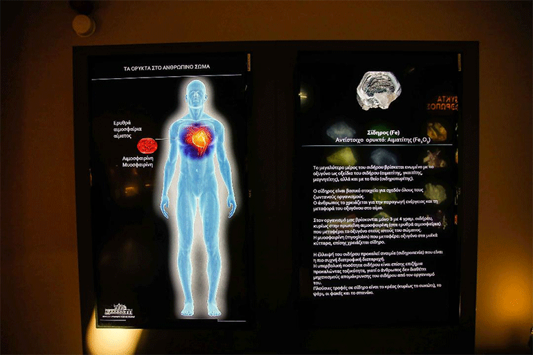 Οι επισκέπτες θα έχουν την ευκαιρία να συναντήσουν από κοντά όλα τα είδη των ορυκτών, να γνωρίσουν το όνομα, το χρώμα και την υφή τους, καθώς και να τα συνδέσουν με αντικείμενα της σύγχρονης εποχής που δεν θα μπορούσαν να υπάρξουν ή να λειτουργήσουν χωρίς αυτά. Ψηφιακοί πίνακες θα ξεναγούν μικρούς και μεγάλους στην ιστορία των ορυκτών και την παρουσία τους στην καθημερινή ζωή, από την αρχαιότητα μέχρι σήμερα, ενώ τα εκθέματα τέχνης θα αναδεικνύουν την πιο γνώριμη σε όλους χρήση τους σε κοσμήματα και είδη τέχνης.
