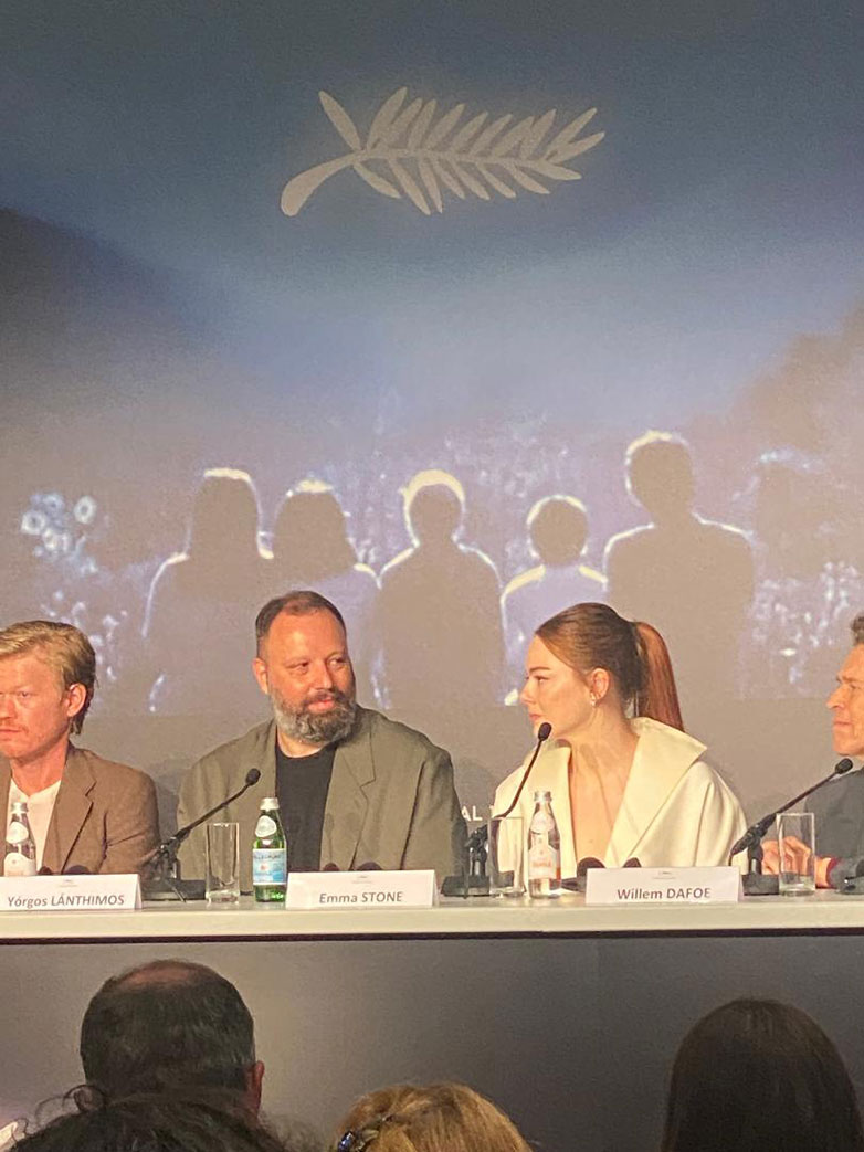 «Είναι η μούσα μου», δήλωσε για τον Γιώργο Λάνθιμο χαμογελώντας κατά τη διάρκεια της συνέντευξης Τύπου για την ταινία “Kinds of Kindness” (“Ιστορίες Καλοσύνης”) που μετέχει στο διαγωνιστικό σκέλος του 77ου Φεστιβάλ των Καννών.
