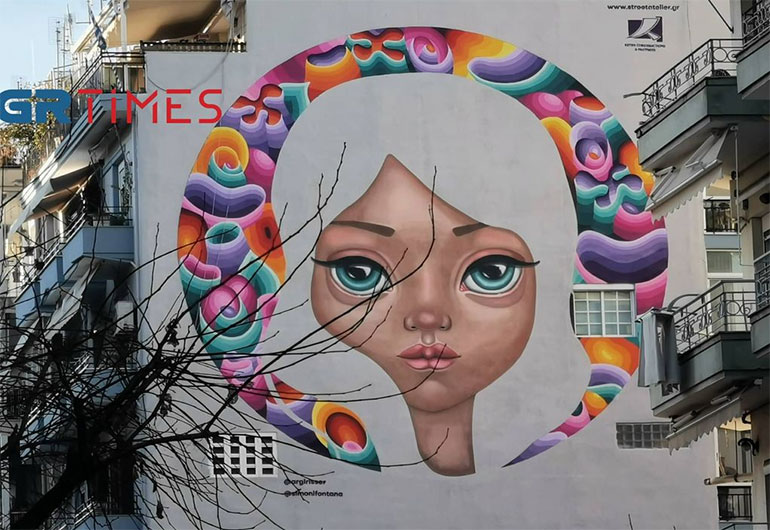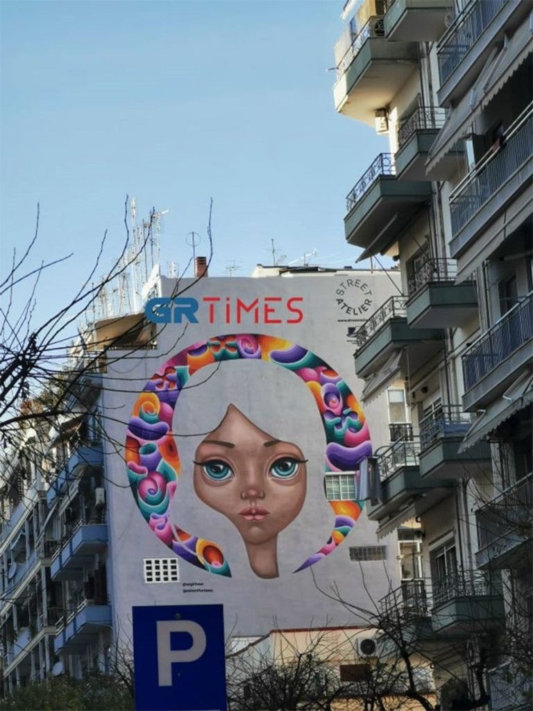 Το συγκεκριμένο γκράφιτι δημιούργησε η ομάδα καλλιτεχνών «Street atelier» επί της οδού Αλεξάνδρου Σβώλου 31 και αποτελεί έργο των καλλιτεχνών Αργύρη SER Σαρασλανίδη και Σιμόνη Φοντάνα με τίτλο «πορτραίτο της Θεσσαλονίκης».