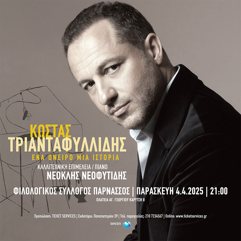 Ο Κώστας Τριανταφυλλίδης, ένας τραγουδιστής με σπάνιο ερμηνευτικό χάρισμα που έχει κερδίσει τα τελευταία χρόνια την αγάπη του κοινού, έρχεται στον Φιλολογικό Σύλλογο Παρνασσός την Παρασκευή 4 Απριλίου σε ένα ρεσιτάλ με τίτλο Ένα όνειρο, μια ιστορία. Μαζί του στο πιάνο ο Νεοκλής Νεοφυτίδης που υπογράφει και την καλλιτεχνική επιμέλεια.