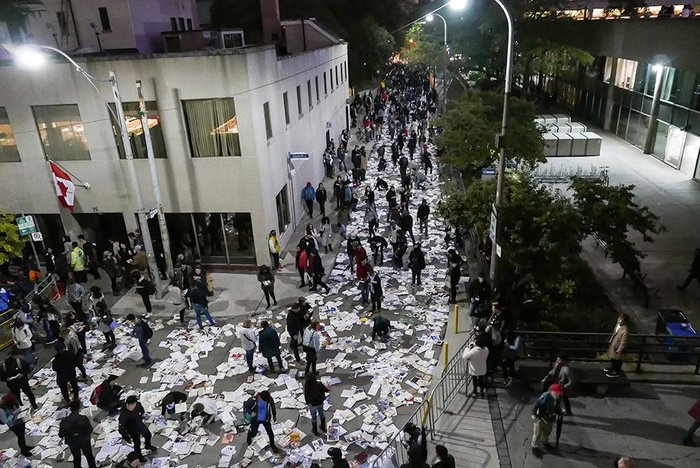 Μία ομάδα ανώνυμων καλλιτεχνών από το Τορόντο του Καναδά με το όνομα luzinterrupts, εκμεταλλευόμενη τη λευκή νύχτα, που πραγματοποιήθηκε στο Τορόντο στις αρχές Οκτωβρίου, επέλεξε έναν ιδιαίτερο τρόπο, για να δηλώσει τη δυσφορία της για την κίνηση και την έντονη ηχορύπανση στους δρόμους της πόλης.