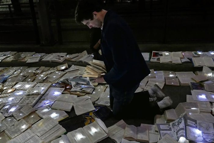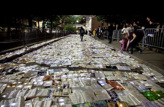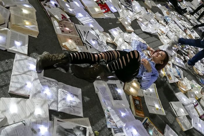 Μετατρέποντας τον δρόμο σε ποτάμι από βιβλία, απέκλεισαν την κυκλοφορία για μία νύχτα. Ο θόρυβος και η ρύπανση αντικαταστάθηκαν για λίγο από λέξεις και ποιήματα, που έδωσαν μία ρομαντική όψη στο project. «Η λογοτεχνία τάχθηκε κατά της κίνησης» ανέφεραν χαρακτηριστικά οι καλλιτέχνες, που συμμετείχαν σε αυτή την προσπάθεια.