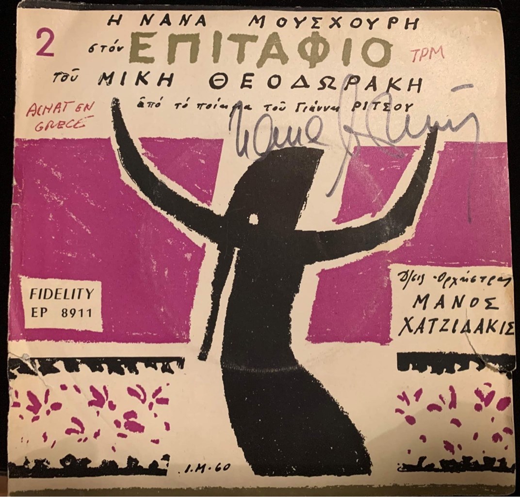 Ένα 45άρι βινύλιο με την εκτέλεση της Νανάς Μούσχουρη σε ενορχήστρωση του Μάνου Χατζηδάκι και την υπογραφή της μεγάλης Ελληνίδας αοιδού στο εξώφυλλο, που βρήκε τυχαία σ’ ένα παζάρι παλαιών αντικειμένων στη Γενεύη της Ελβετίας ο Θεσσαλονικιός ιστορικός Λεόν Σαλτιέλ, «ξυπνά» μνήμες της εποχής εκείνης. «Μέρα μαγιού μου μίσεψες, μέρα μαγιού σε χάνω», γράφει ο Ρίτσος σ’ έναν από τους εμβληματικούς στίχους του Επιταφίου που δίνουν «φωνή» στο μοιρολόι της χαροκαμένης μάνας που θρηνεί τον γιο της περιτριγυρισμένη από χωροφύλακες και διαδηλωτές.