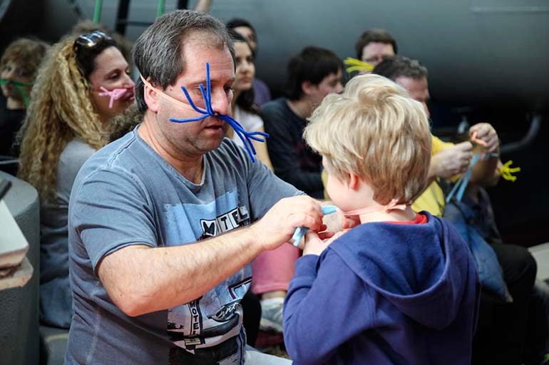 «Ένας ποντικός τρύπωσε στο Γκάζι!» κι εμείς φοράμε τα μουστάκια μας, μεταμορφωνόμαστε για λίγο σε μικρά τρωκτικά και τρυπώνουμε μαζί του σε κάθε κρυφή γωνιά του παλιού εργοστασίου φωταερίου.