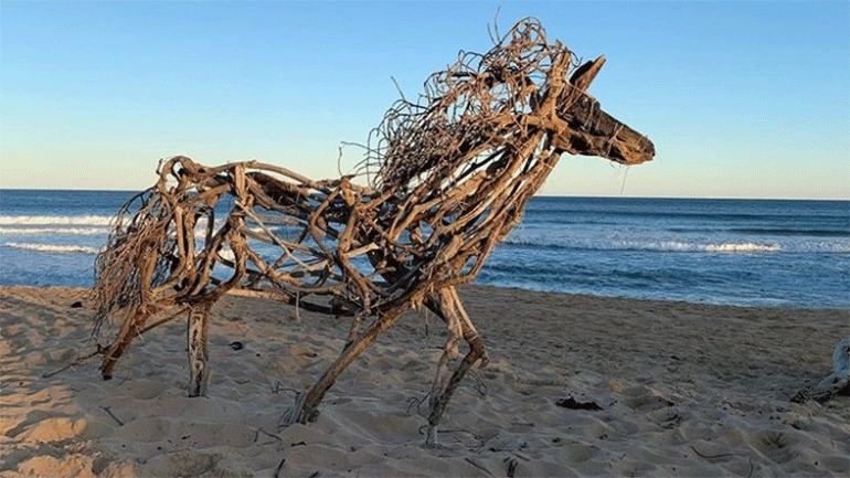 Ο καλλιτέχνης, Πιτ Ρας αυθόρμητα δημιούργησε ένα απλό γλυπτό αλόγου στην παραλία του Τέριγκαλ στην Αυστραλία από φυσικά υλικά.
