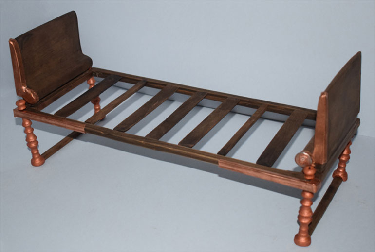 Από τη θέση που βρέθηκαν τα χάλκινα τμήματα της κλίνης και με βάση τη σχεδίαση που έγινε στο μουσείο, η κ. Χονδρογιάννη και οι συνεργάτες της προσπάθησαν να προσεγγίσουν τον τρόπο που δένονταν αυτά τα κομμάτια μεταξύ τους και προχώρησαν σε αναπαράσταση μιας μικρογραφίας, η οποία παρουσιάζεται στο συνέδριο. Πρόκειται ουσιαστικά, όπως είπε, για μία πρόταση αναπαράστασης, «κατά την εκτίμησή μας πολύ κοντά στο πρωτότυπο, καθώς μας λείπουν τα ξύλινα στοιχεία, η οποία έγινε με βάση την προκαταρκτική μελέτη του υλικού (ανασκαφικά στοιχεία, βιβλιογραφικά δεδομένα, συντήρηση ενός μέρους – του απαιτούμενου για την κατανόησή της κλίνης, σχεδίαση όλων των τμημάτων, καθώς και την ακτινογραφία και αξονική τομογραφία των ποδιών).