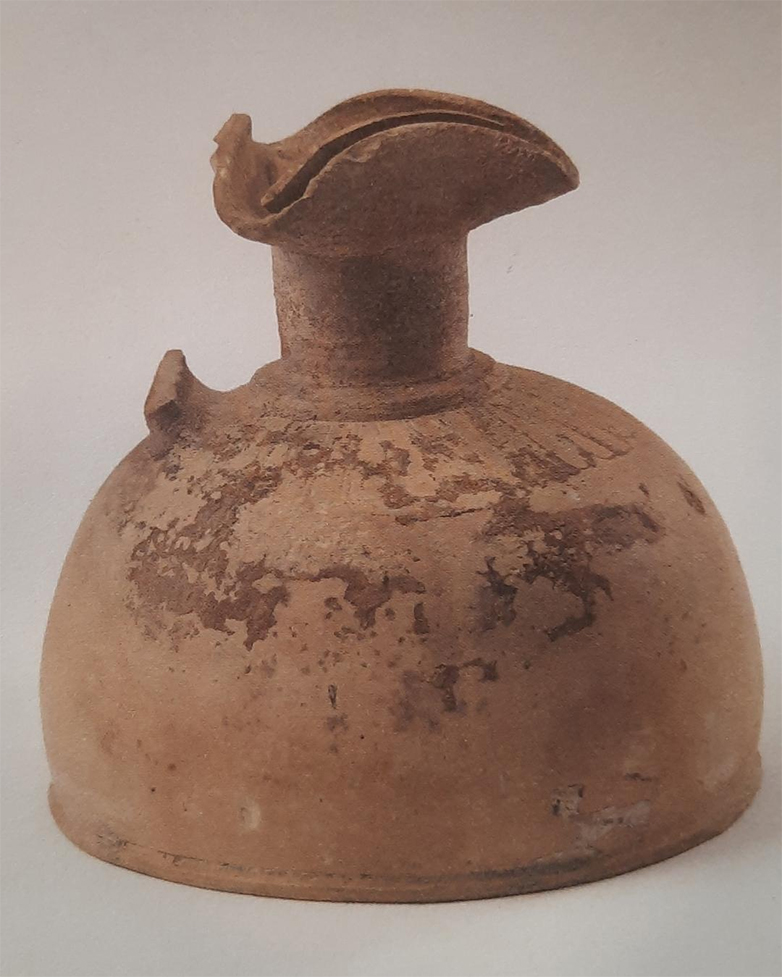 Αρχαιότητα που είχε απομακρυνθεί, κατά την περίοδο της Γερμανικής κατοχής, επιστράφηκε στην Ελλάδα, από τον Δήμο του Αννόβερου Γερμανίας και το Μουσείο August Kestner. Πρόκειται για μία τριφυλλόσχημη οινοχόη με πώμα, που χρονολογείται στο 620- 600 π.Χ., η οποία σώζει ίχνη από γραπτή διακόσμηση περιμετρικά του λαιμού. Το αγγείο είχε περιέλθει στο Μουσείο το 1986 από τον καθηγητή Γεωλογίας Δρ.Hannfrit Putzer και, σύμφωνα με επιστολή που το συνόδευε, το είχαν βρει Γερμανοί το 1943 κατά τη διάρκεια εκσκαφών, στο νότιο άκρο της διώρυγας της Κορίνθου και του το είχαν παραδώσει. Μαζί με την επιστολή υπήρχε και σκαρίφημα που έδινε τη θέση ανεύρεσης του αντικειμένου.