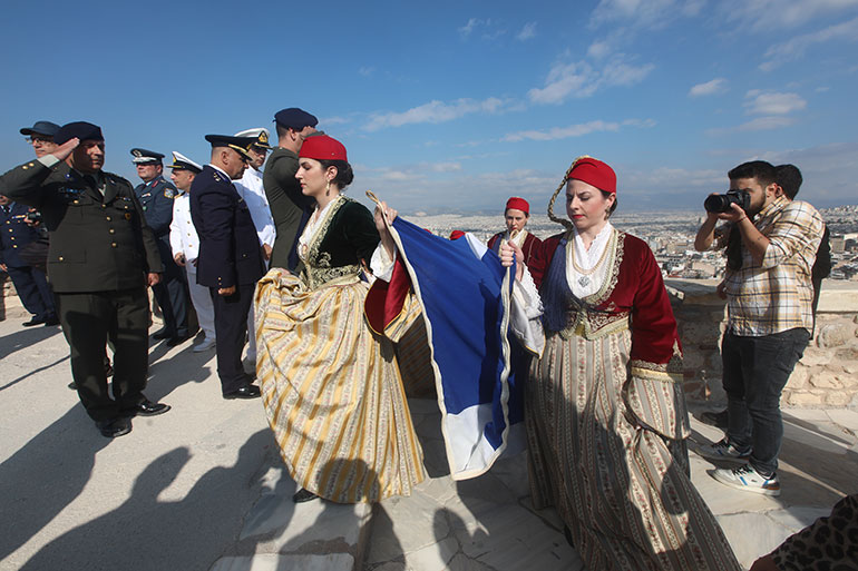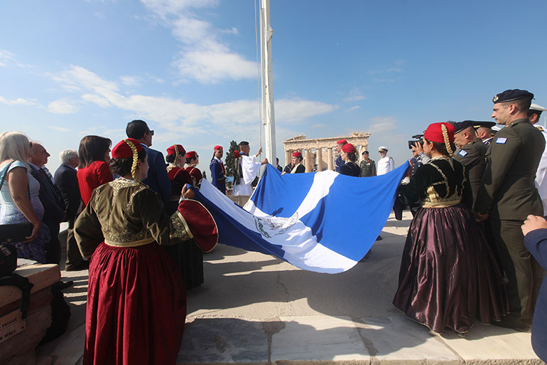 Σήμερα η επέτειος γιορτάστηκε στην Ακρόπολη, όπως κάθε χρόνο με την έπαρση της ελληνικής σημαίας.