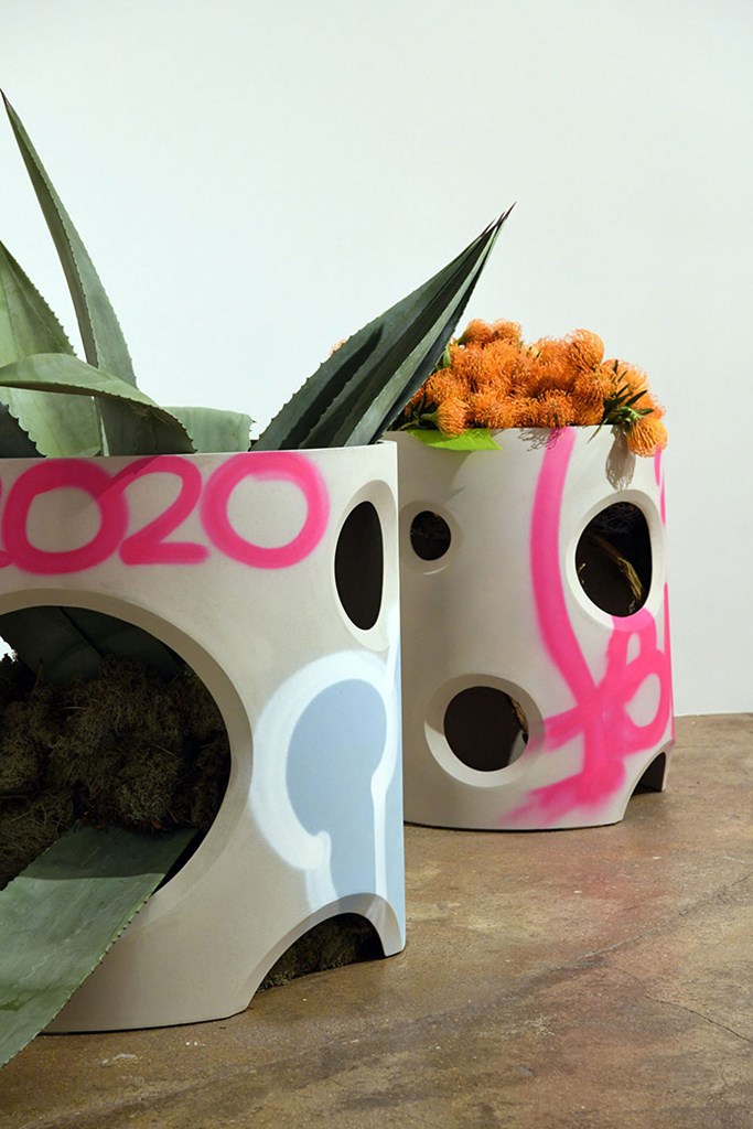 Ο Abloh τα περιέγραψε σαν κάτι μεταξύ γλυπτών και χρηστικών αντικειμένων. Κάθε ένα είναι κατασκευασμένο από τσιμέντο, με διάτρητη επιφάνεια. Ως «αντανάκλαση της γενιάς μας», τα έπιπλα είναι βαμμένα με σπρέι από το «ελεύθερο» καλλιτεχνικό χέρι του Abloh, θυμίζοντας το γκράφιτι στους τοίχους ενός αστικού κέντρου και υποχρεώνοντάς μας να ανακαλέσουμε στη μνήμη την «κουλτούρα του δρόμου».