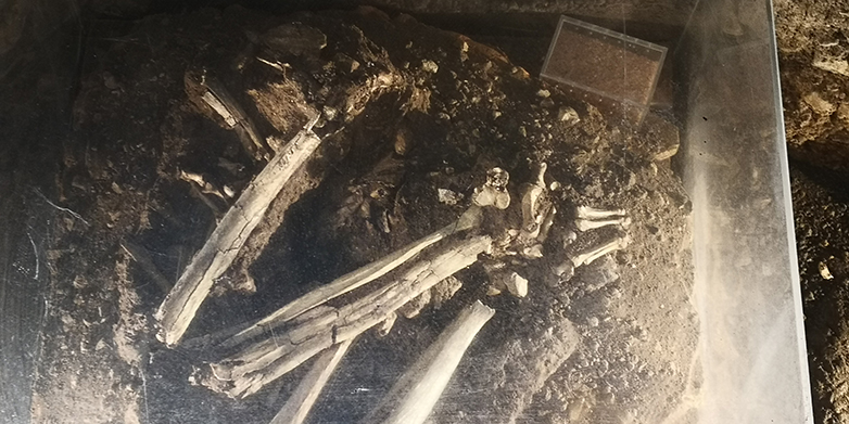 Όλοι οι σκελετοί ανήκουν στον τύπο του Homo Sapiens sapiens. Στα βαθύτερα στρώματα της Μέσης Παλαιολιθικής, αν και δεν βρήκαμε ταφές αυτής της περιόδου, είχαμε όμως την τύχη να βρούμε αποτυπώματα ανθρώπινων πελμάτων (ένα εύρημα σπανιότατο σε παγκόσμια κλίμακα), τα οποία όμως ήταν καλυμμένα, ώστε δύσκολα μπορεί να ανιχνεύσει κανείς ιδιαίτερα ανατομικά χαρακτηριστικά σε αυτά. Εκτιμάται ωστόσο, σύμφωνα με τους τύπους των εργαλείων που βρέθηκαν σε αυτά τα στρώματα, ότι εκεί ζούσαν Neanderthal.