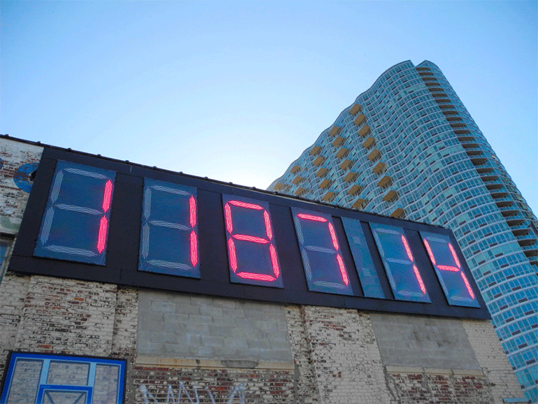 Τα προηγούμενα τέσσερα χρόνια, οι Νεοϋρκέζοι έβλεπαν στην όψη ενός κτηρίου στο Queens που έβλεπε το ποτάμι, ακριβώς απέναντι από την έδρα του Οργανισμού Ηνωμένων Εθνών, ένα γιγαντιαίο ψηφιακό ρολόι με αριθμούς σε κόκκινο νέον να μετρά αντίστροφα τις ημέρες της προεδρίας του Ντόναλντ Τραμπ. Την Τετάρτη, 20 Ιανουαρίου 2021, ημέρα ορκωμοσίας του Τζο Μπάιντεν το ρολόι έδειξε «O».