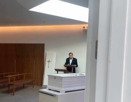 Το ύστατο χαίρε στην εκλιπούσα ηθοποιό Μαίρη Χρονοπούλου, απεύθυνε η Εταιρεία Ελλήνων Σκηνοθετών, δια στόματος του προέδρου της Χάρη Παπαδόπουλου στην Ριτσώνα, στην αίθουσα εκδηλώσεων, στον αποχαιρετισμό που προηγήθηκε της διαδικασίας αποτέφρωσής της.