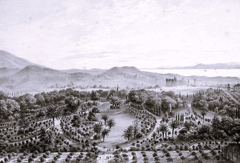 Στις 16 Αυγούστου του 1843, η Αμαλία γράφει στον πατέρα της: «Σήμερα ξύπνησα από τις έξι και μισή, εγώ, που άλλοτε δεν μπορούσα να σηκωθώ από το κρεβάτι μου. Εσύ κάνεις ασφαλώς πρωί πρωί τον περίπατό σου στον ωραίο κήπο του Ράστεντε (σσ: ύπαιθρος της Κάτω Σαξονίας, όπου βρίσκεται το εξοχικό αρχοντικό της οικογένειας). Κάτι που εκεί είναι τόσο όμορφο και εδώ τόσο δύσκολο να γίνει, είναι το γρασίδι. Όταν το κουρεύεις ξεραίνεται από τον ήλιο, αλλά και στο πότισμα παρουσιάζει ιδιαιτερότητα. Αν το ποτίσεις σε λάθος χρόνο, καταστρέφεται. Έτσι αντικαθιστούν οι πορτοκαλιές το γρασίδι, που όταν τις βλέπεις από πάνω, απλώνονται στο μπροστινό μέρος σαν πράσινο χαλί. Ο κήπος έχει πάνω από 1.000 πορτοκαλιές […] Έχει κιόλας μέρη που κυριολεκτικά προσφέρουν σκιά, ιδιαίτερα σε ένα σημείο, στο οποίο οι τριανταφυλλιές σχηματίζουν μία σκιερή γωνιά, είναι πολύ όμορφα. Έχει και πολύ ωραία θέα, βλέπει κανείς τη θάλασσα, τον ναό του Διός, καθώς και την Ακρόπολη…».