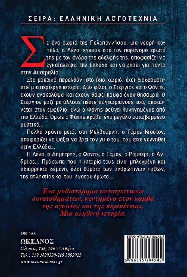 Η συγγραφέας Γερακίνα Μπουρίκα, μητέρα δύο μικρών παιδιών, λογίστρια στο επάγγελμα, παίρνει στα χέρια της μια αληθινή ιστορία και δημιουργεί ένα συναρπαστικό ανάγνωσμα όπου τα ανθρώπινα πάθη καταστρέφουν ζωές και όνειρα μέχρι την τελική λύση – όπως γίνεται στις αρχαίες τραγωδίες.