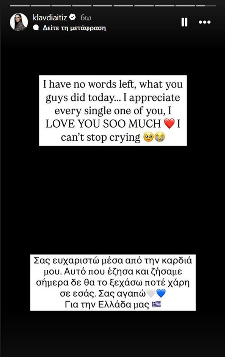 Η ίδια μάλιστα, αργότερα έγραψε στον προσωπικό της λογαριασμό πως ακόμα κλαίει και ευχαριστεί πολύ όσους τη στήριξαν.