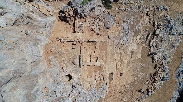 Οι βραχώδεις περιοχές και οι αρχαίες αποθέσεις σε λάκκους που ανασκάφτηκαν, αποκάλυψαν ευρήματα κυρίως των αρχαϊκών χρόνων. Η δαιδαλική τέχνη φαίνεται να κυριαρχεί στην πρώιμη αρχαϊκή περίοδο (650 π.Χ.) με την μορφή γυμνών γυναικείων  μορφών με δαιδαλική κόμμωση και υψηλό πόλο.  Από τα ευρήματα του 6ου αι. π.Χ. ξεχωρίζουν αντικείμενα από αιγυπτιακό και φοινικικό γυαλί, πήλινα περίαπτα πουλιών και ζώων, αιχμές βελών και δοράτων, μικρογραφικά αγγεία, ένθρονες γυναικείες μορφές, καθώς και ένα γυναικείο ειδώλιο που κρατά παπαρούνα και ρόδι.  Όσον αφορά στα ευρήματα του 4ου και 3ου αι. π. Χ. ξεχωρίζουν οι υδρίσκες, μία ραμφόστομη τελετουργική πρόχους με ερυθρόμορφη παράσταση ιπτάμενου έρωτα, σιδερένιες αιχμές και αλαβάστρινα αγγεία.