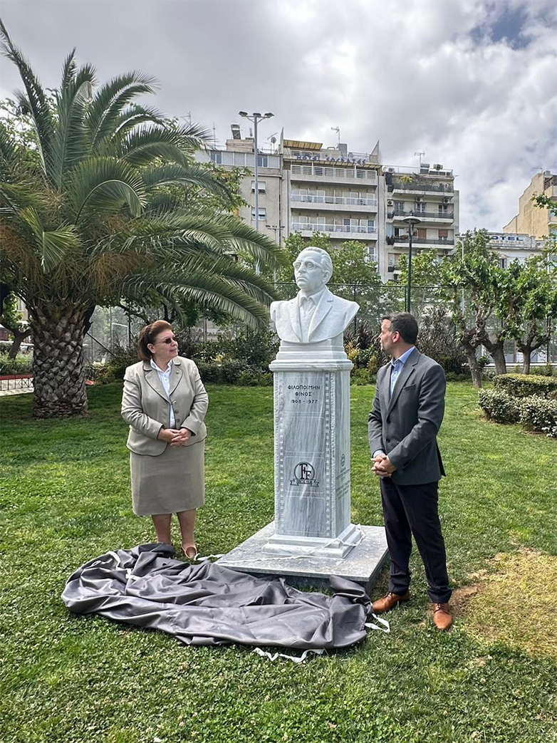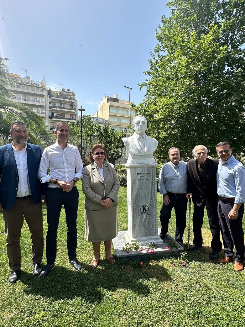 Τα αποκαλυπτήρια της προτομής του «πατριάρχη» του ελληνικού κινηματογράφου, του κορυφαίου Έλληνα κινηματογραφικού παραγωγού και ιδρυτή της Finos Film, Φιλοποίμενος Φίνου, έγιναν σήμερα από την υπουργό Πολιτισμού Λίνα Μενδώνη και τον δήμαρχο Αθηναίων Χάρη Δούκα, στο πάρκο του σταθμού Λαρίσης, όπως πληροφορεί ανακοίνωση του ΥΠΠΟ. Το έργο χρηματοδοτήθηκε από το υπουργείο Πολιτισμού και φιλοτέχνησε ο γλύπτης Βαγγέλης Ηλίας.