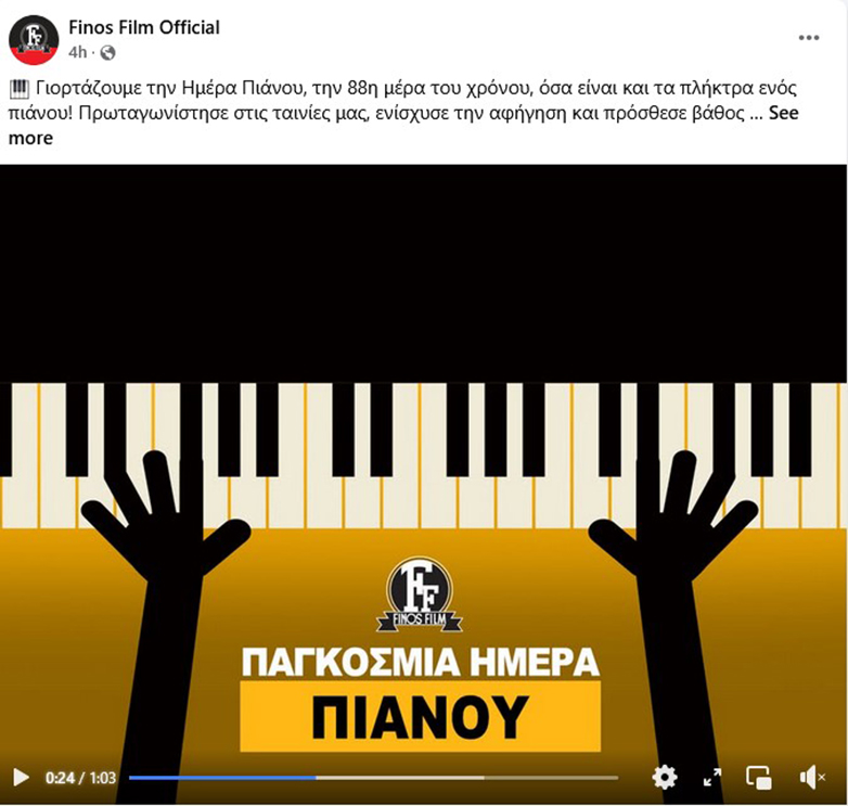 Η Φίνος Φιλμ με αφορμή την Παγκόσμια Ημέρα Πιάνου δημοσίευσε στα social media ένα αφιέρωμα, στο οποίο η μουσική και το πιάνο έχουν την τιμητική τους!