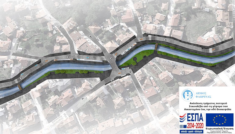 Συγκεκριμένα, προβλέπεται η δημιουργία νέων πεζοδρομίων και η διαπλάτυνση των υφιστάμενων σε όλο το μήκος του έργου, η δημιουργία χώρων στάθμευσης και χώρων πρασίνου, η τοποθέτηση αστικού εξοπλισμού και φωτιστικών νέας τεχνολογίας, η αντικατάσταση της τσιμεντένιας πεζογέφυρας πλησίον των Δικαστηρίων με μια νέα μεταλλική και η κατασκευή τριών νέων πεζογεφυρών. Επίσης, θα γίνει διευθέτηση της κοίτης, ούτως ώστε να μεταφερθεί η ροή του νερού μακριά από τους πλευρικούς τοίχους του ποταμού όπου έχουν σχηματιστεί υπόσκαπτα με κίνδυνο κατάρρευσής τους και κατά συνέπεια κατάρρευσης του οδοστρώματος των παραποτάμιων οδών.