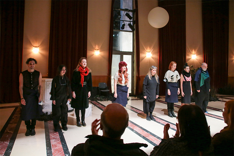 Υπόκλιση της σκηνοθέτιδος, των συντελεστών και των ηθοποιών της παράστασης.