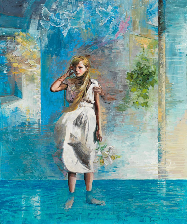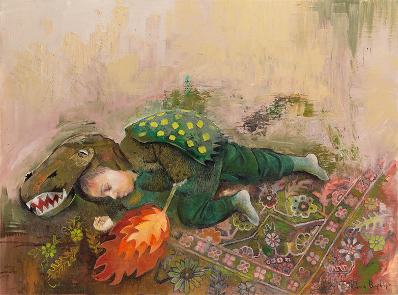 Στα έργα της ζωγράφου εικονίζονται παιδιά που δεν θέλουν να μεγαλώσουν, ενήλικες που θα ήθελαν να ξαναγίνουν παιδιά. Μικρά ενορχηστρωμένα θαύματα συντελούνται πίσω από γυάλινους διάφανους τοίχους, δέντρα μπλε θροΐζουν σε κάμπους άγνωστους, ένας μικρούλης κουρασμένος δράκος αποκοιμιέται τρυφερά και μια Αλίκη μας καλεί σε νέα χώρα θαυμάτων. Στα διάστικτα ετούτα από πυκνά επεισόδια παλίμψηστα πεδία με τα μαγικά ιπτάμενα χαλιά-κήπους, τις ευρηματικές καλειδοσκοπικές διαφάνειες και τα τολμηρά αιωρούμενα χρώματα που συνδέονται με επίπονα επάλληλα σχεδιάσματα, εκτοξεύοντας μοβ, γαλανούς και ρόδινους παφλασμούς εναιωρούμενης ύλης, συναντούμε και γευόμαστε απαλά την άλλη διάσταση των πραγμάτων. Το πέρασμα σε ένα λιβάδι ονείρων, κεντημένο με άγνωστα παραμύθια, μυστικούς γρίφους και χειροποίητα παιδικά αθύρματα, σπαρμένο με λεπτή σκόνη εξαίσιας δαντελωτής μνήμης και συντελεσμένου μα ωσεί παρόντος χρόνου.