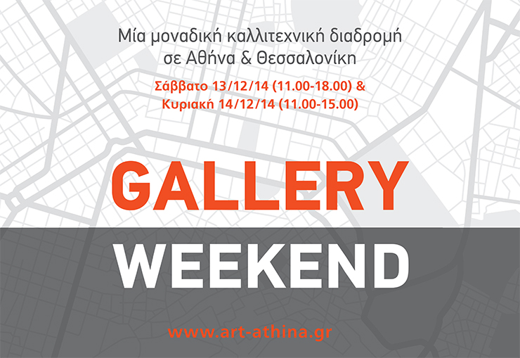 Τριάντα οχτώ γκαλερί, πάνω από 300 καλλιτέχνες, Έλληνες και ξένοι, και εκατοντάδες έργα τέχνης καλείται να εξερευνήσει το κοινό το Σάββατο 13 και την Κυριακή 14 Δεκεμβρίου με οδηγό τη θετική διάθεση και ανά χείρας έναν χάρτη. Το σύνθημα για να ξεκινήσει αυτή η περιήγηση στο ελληνικό τοπίο των σύγχρονων εικαστικών τεχνών είναι δύο λέξεις: «Gallery Weekend».