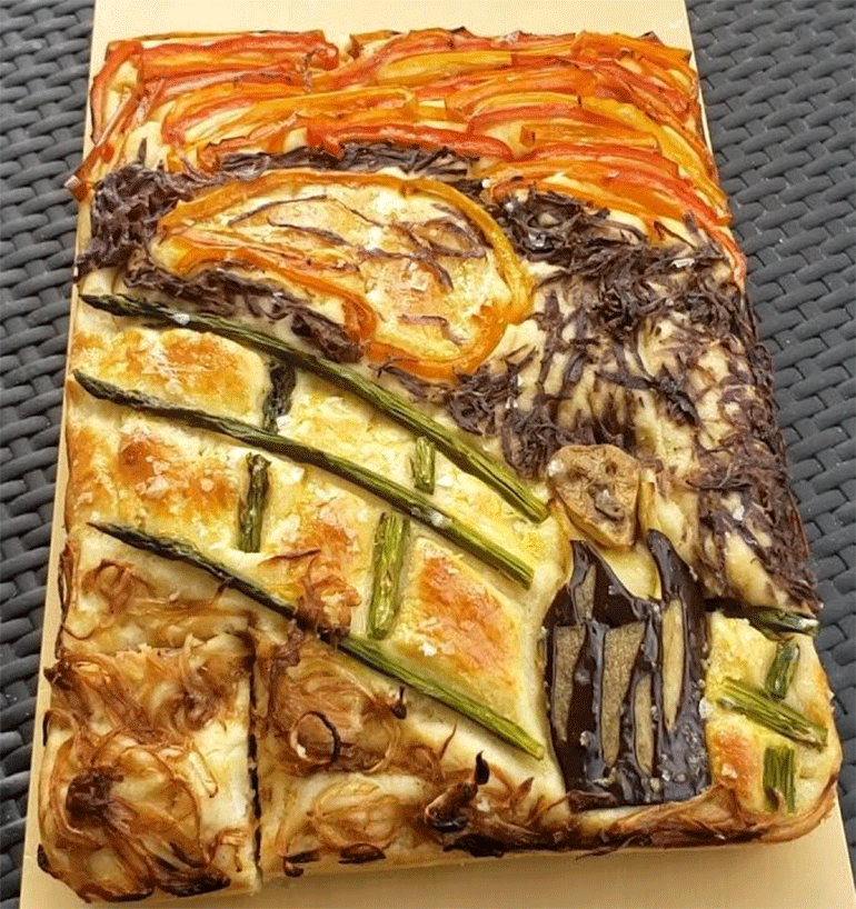 Η παρατεταμένη καραντίνα στο σπίτι, λόγω της πανδημίας, και το λουκέτο στα εστιατόρια οδήγησε πολλούς πίσω στην κουζίνα να δοκιμάσουν φιλόδοξη μαγειρική. Έδωσε, παράλληλα, την ευκαιρία σε επαγγελματίες αλλά και ευφάνταστους ερασιτέχνες αρτοποιούς να κάνουν σπουδαία βήματα στη δημοφιλή, σήμερα, τάση «Garden Focaccia»: την απόδοση σύγχρονων έργων ζωγραφικής με καμβά το ψωμί φοκάτσα, όπως την «Έναστρη Νύχτα» του Βαν Γκογκ, την «Κραυγή» του Έντβαρτ Μουνκ και άλλα.