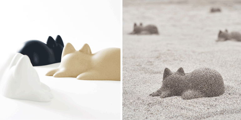 Ενθουσιαζόμαστε να κάνουμε σχήματα με βρεγμένη άμμο στην ακροθαλασσιά. Ενθουσιαζόμασταν μικροί όταν χρησιμοποιούσαμε φορμίτσες για να κάνουμε από άμμο ψαράκια, χελωνίτσες, αστερίες, ενθουσιαζόμαστε και μεγάλοι βλέποντας μικρούλια να κάνουν όλα αυτά τα θαυμαστά. Από την Ιαπωνία έρχεται μια καταπληκτική φόρμα για παραλία: το Neko Cup, για μια γατούλα από άμμο που παίρνει έναν υπνάκο!