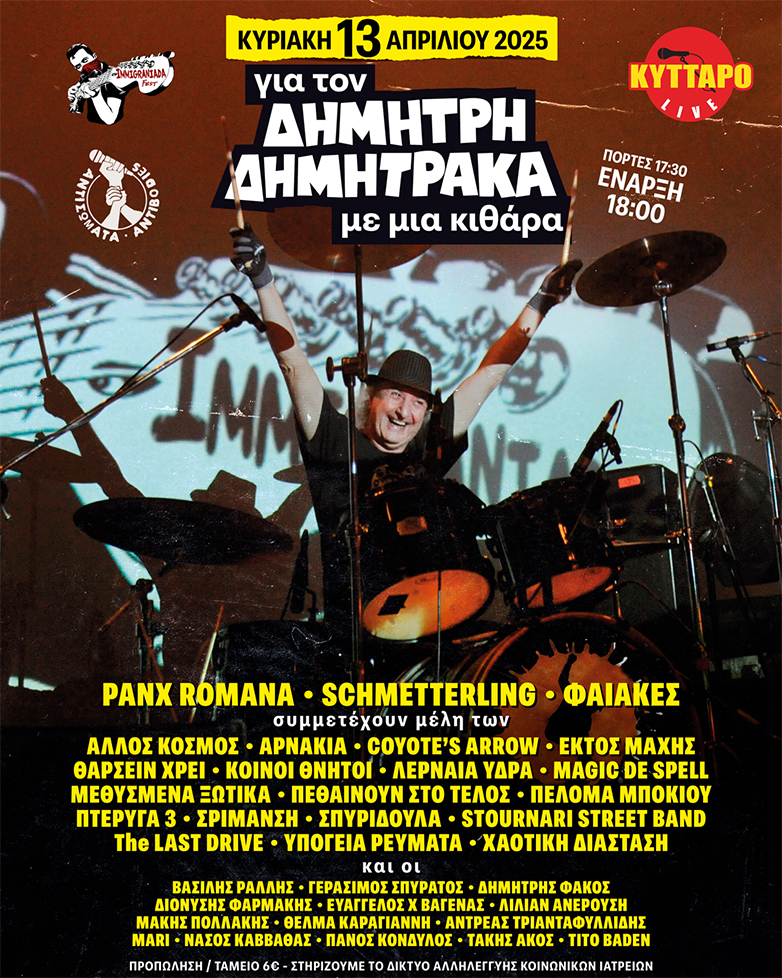 Την Κυριακή 13 Απριλίου 2025 οι πόρτες του Κύτταρο Live Club ανοίγουν για να μοιραστούμε στιγμές από την πορεία του Δημήτρη Δημητράκα, που για περισσότερα από πενήντα χρόνια έτρεχε με τη μοτοσυκλέτα του στην πίστα του ελληνικού ροκ.