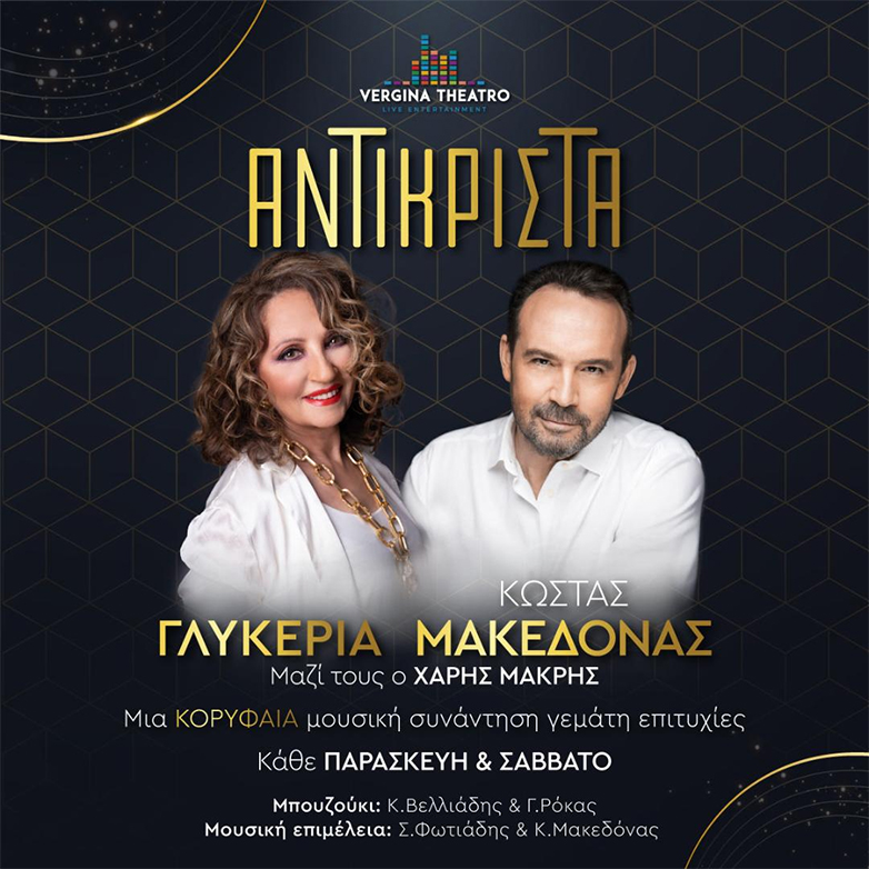 Δύο σπουδαίοι καλλιτέχνες στέκονται «Αντικριστά» στη σκηνή του Vergina Theatro για ένα μουσικό πρόγραμμα, όπου το ελληνικό λαϊκό τραγούδι έχει την τιμητική του.