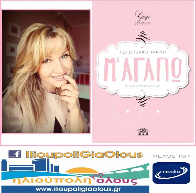 Η Γωγώ Τσακογιάννη παρουσιάζει την Τετάρτη 21 Φεβρουαρίου και ώρα 06.30 μ.μ. στο Δημοτικό Αναψυκτήριο Ηλιούπολης «Δημήτρης Κιντής», το βιβλίο της με τίτλο «Μ’ αγαπώ», ένα βιβλίο αισιοδοξίας για γυναίκες που αντιμετώπισαν, αντιμετωπίζουν ή θα αντιμετωπίσουν καρκίνο μαστού.