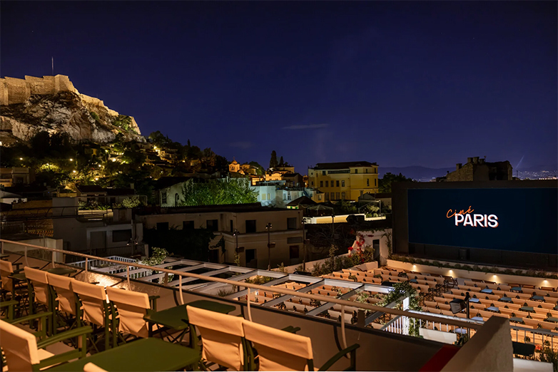 Το Cine Paris βρίσκεται στην ταράτσα του χαρακτηρισμένου ως νεότερου μνημείου κτηρίου του Stelios Philanthropic Foundation της οδού Κυδαθηναίων 22, που διαθέτει μία από τις ωραιότερες θέες της Αθήνας. Το Cinobo ανέλαβε την επαναλειτουργία του ιστορικού θερινού σινεμά και έπειτα από δουλειά μηνών, παραδίδει το Cine Paris πλήρως ανακαινισμένο, αναβαθμισμένο και πλέον προσβάσιμο σε άτομα με κινητική αναπηρία.
