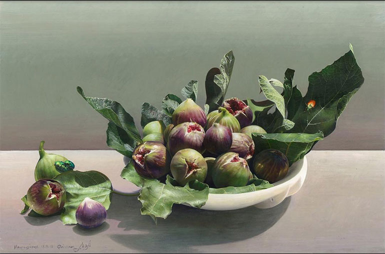Μοναδικές νεκρές φύσεις με τα ολοζώντανα πολύχρωμα φυτά του σαν αληθινά, όπως και τα φρούτα του, που σε κάνουν να θέλεις να τα γευτείς. Και μαζί κορυφαίοι ποδοσφαιριστές, σε φάσεις παιχνιδιού, προσθέτουν μια άλλη όψη ζωγραφικής του αεικίνητου Μιχάλη Μακρουλάκη, μαζί με εικόνες καθημερινότητας στο νησί, όπου πλέον ο ζωγράφος διαμένει μόνιμα.