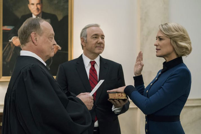 H βραβευμένη με Χρυσή Σφαίρα και υποψήφια για βραβείο Emmy Ρόμπιν Ράιτ επιστρέφει ως Πρόεδρος των Ηνωμένων Πολιτειών στην έκτη και τελευταία σεζόν – πρώτη χωρίς τον Κέβιν Σπέισι – της βραβευμένης εμβληματικής σειράς «House of Cards».
