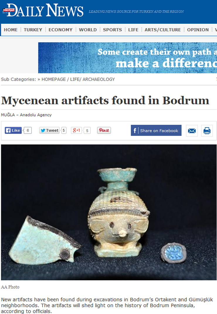 Νέα αντικείμενα από τη Μυκηναϊκή εποχή είδαν το φως κατά τη διάρκεια ανασκαφών που διεξάγονται στην Αλικαρνασσό, στη νοτιοδυτική Τουρκία, σύμφωνα με την εφημερίδα Hurriyet Daily News.
